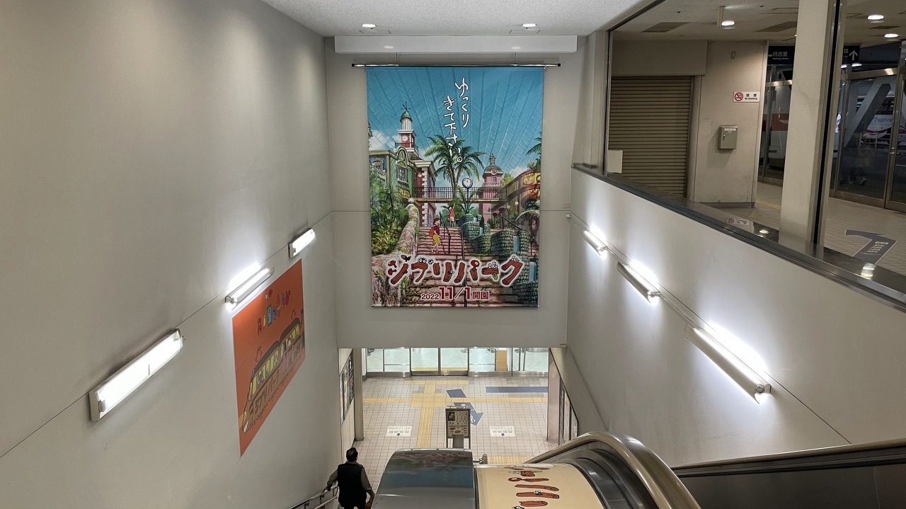 역에서부터 본격적인 지브리 파크로 내려가는 엘리베이터입니다. (사진은 내려온 뒤 찍었습니다)