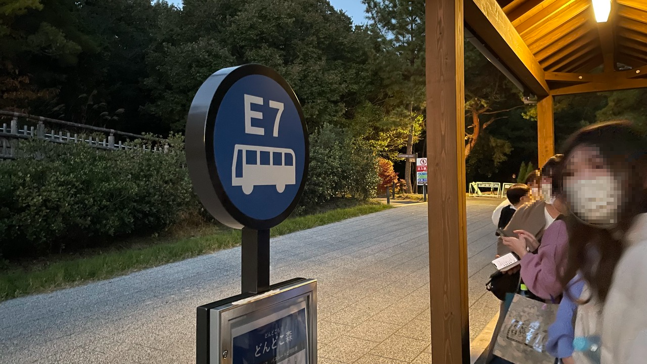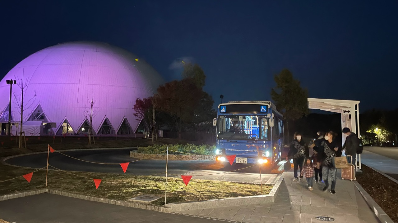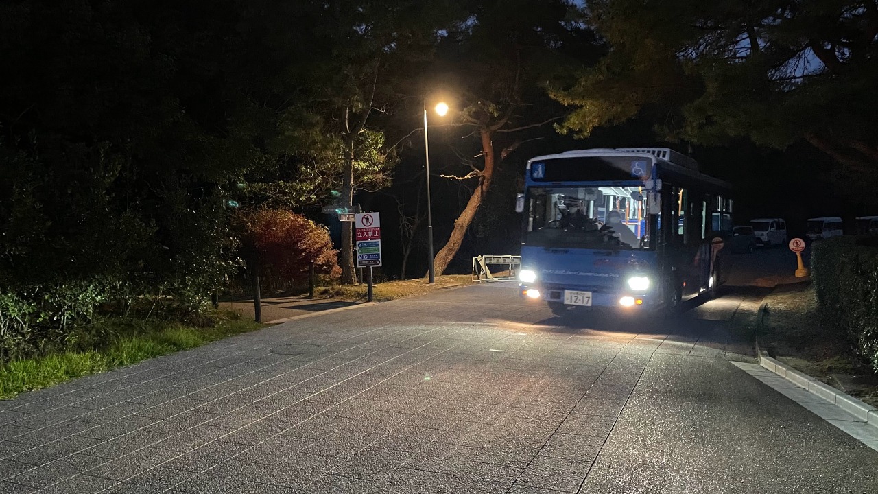 눈 깜짝할 새에 해가 져버렸습니다. 공원 내에서 운영되는 무료버스를 타고 역으로 나갑니다