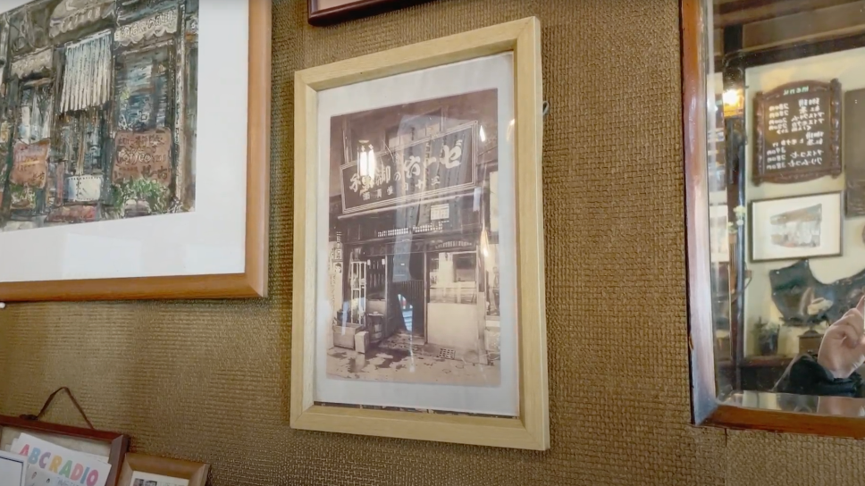 벽에 옛 점포로 보이는 사진이 걸려있는데 쇼와 5년(1930년) 때의 사진이라고 합니다